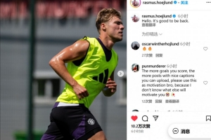 体育资讯7月12日讯 不久前,曼联前锋霍伊伦更新了社交媒体,晒出了自己的训练照。